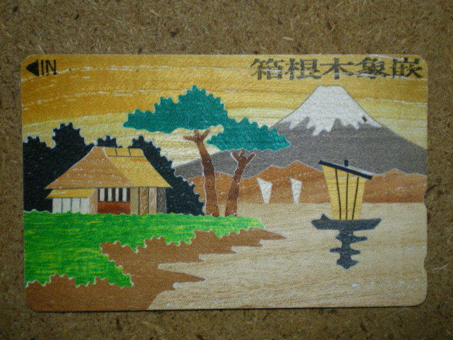 fuji・箱根木象嵌 富士山 家 木貼テレカ