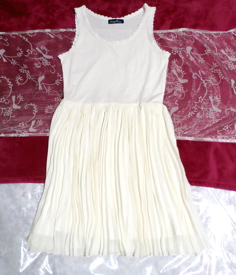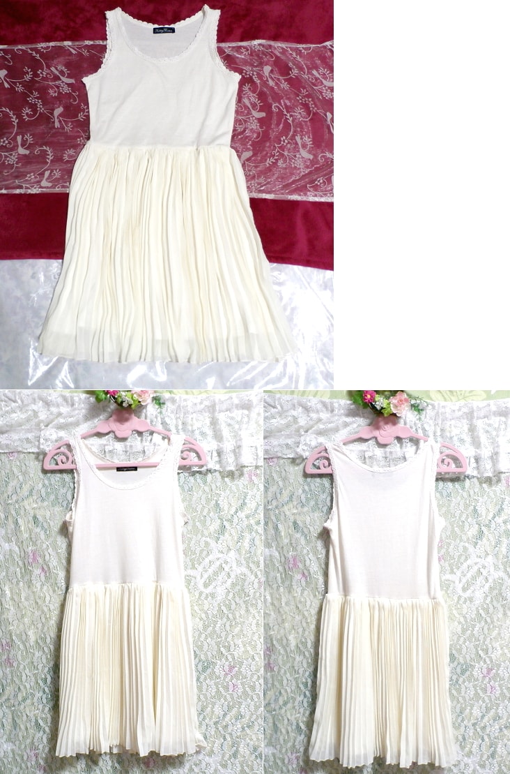 白ホワイトネグリジェノースリーブシフォンスカートワンピース White negligee sleeveless chiffon dress