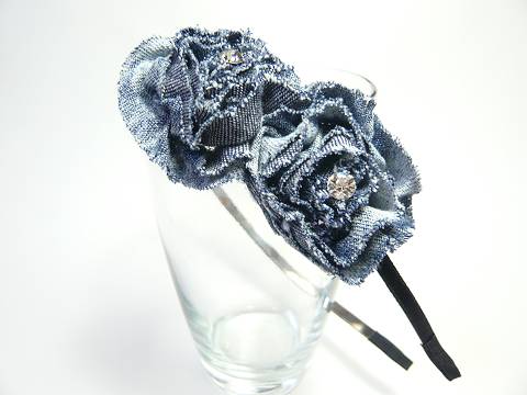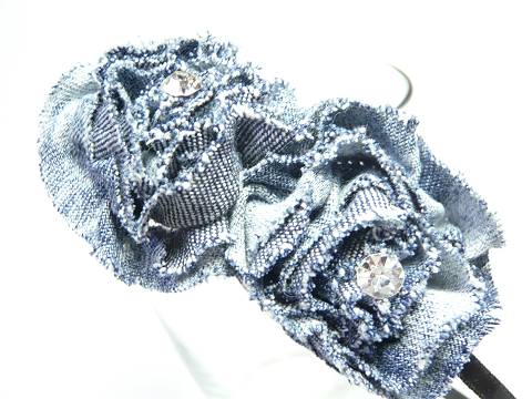 流行のデニムの大きなお花のカチューシャです。 | ||