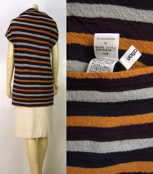 A 美品★Plantation プランテーション★綺麗ボーダー柄*個性的アシンメトリー*上品カットソー*M表記★9~11号*M~L*38~40相当