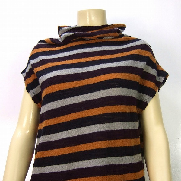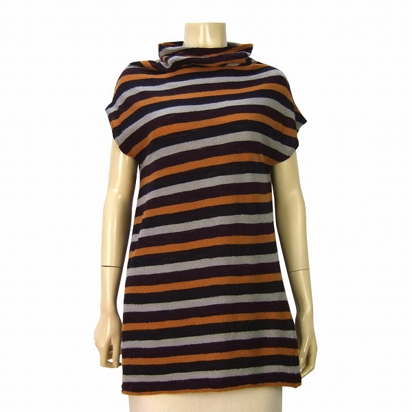 **・゜Plantation個性的なアシンメトリーデザインの上級カットソーです。柔らかな上質ウール100%生地×綺麗なボーダー柄デザイン(スカイグレー系&パンプキン系&マルベリーパープル系&ネイビーブルー系 ※胸~裾にかけて斜めストライプ~ボーダー柄に変化)♪美しいシルエットの上品カットソーです。*:.。