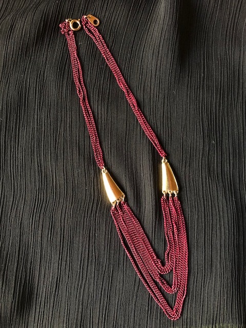 首回りは三重で、左右三角の金具からは九個のクサリが繋がっております。