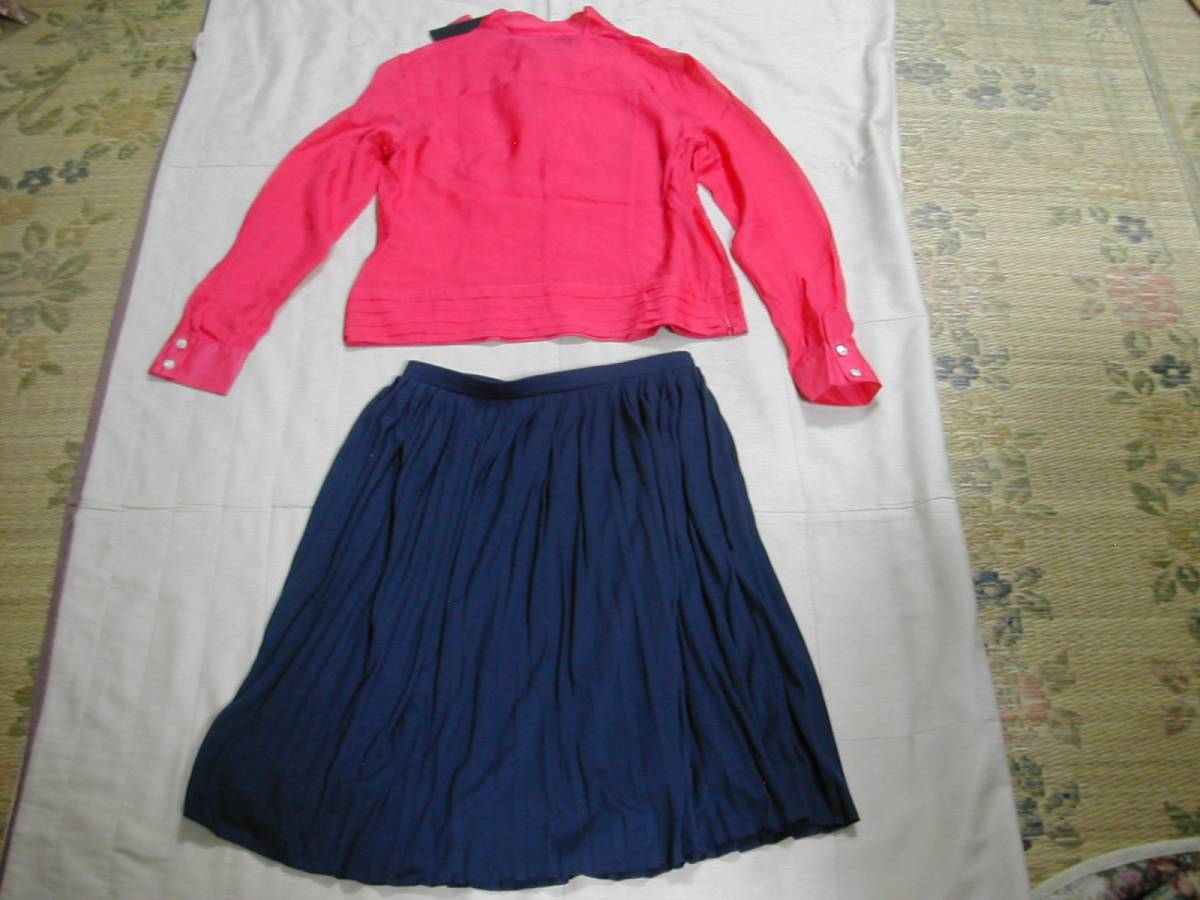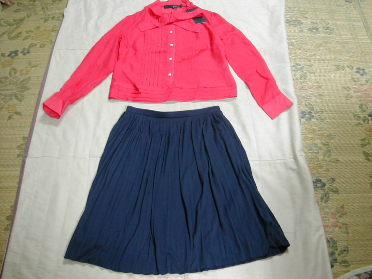 ■新品:朱色シルクブラウス+紺スカート    Tm171