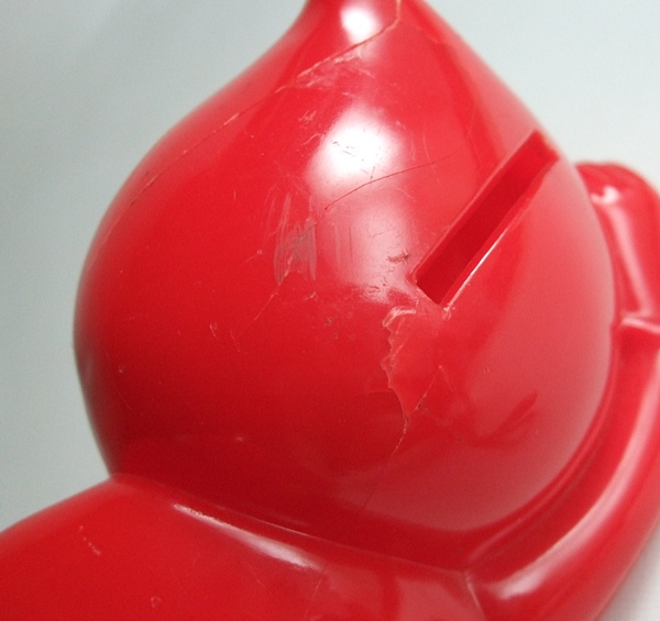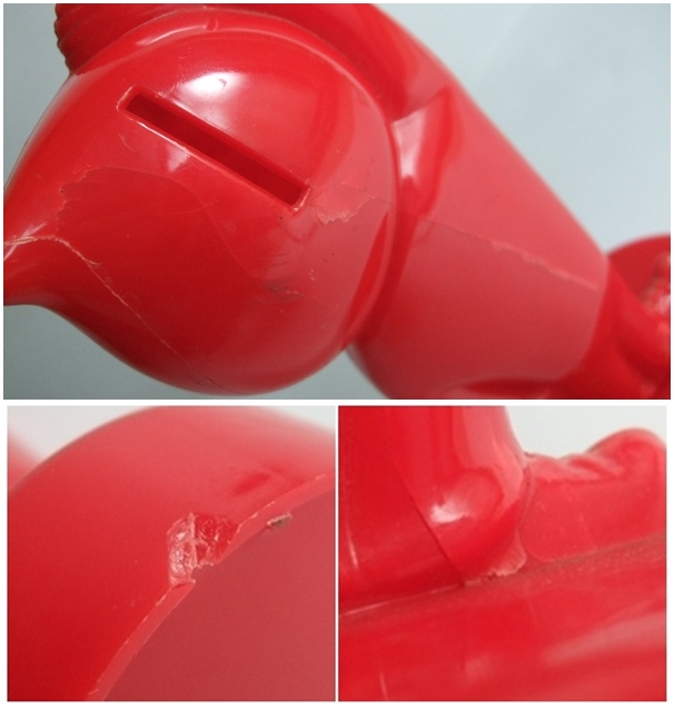ヒビは顔、頭、背中、足部分などにあり、状態が良くありません。