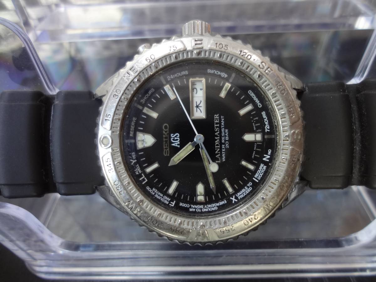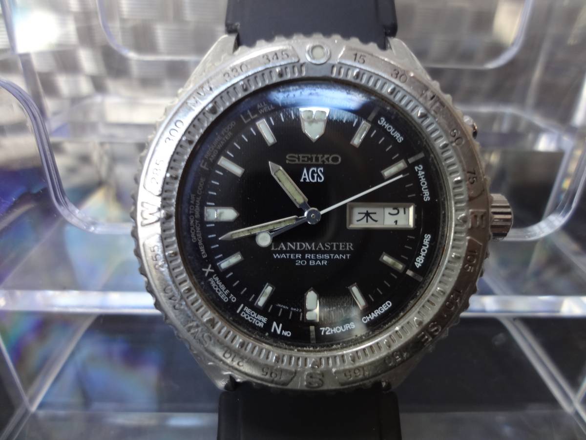 ★☆★☆★☆★☆★☆★☆★☆★☆★☆★☆★☆★☆★☆★アクセスありがとうございます。 下記の情報をご確認ください。☆★☆★☆★☆★☆★☆★☆★☆★☆★【商品名】★☆★☆★☆★☆★☆★☆★☆★☆★◆△▲ SEIKO AGS LANDMASTERセイコー ランドマスター デイデイト 自動巻き発電 メンズ 腕時計 5M23-6A20 ジャンク ■キネティック◆■商品総重量:約100.0g ■ケース横直径:約45.5mm(リューズ含む)■腕周り内寸:*** ■ラグ幅:19mm ■裏蓋シリアル:3N1***■付属品:特にありません※画像にあるものですべてになります。※素人実測に付き多少の誤差がある場合がございます。☆★☆★☆★☆★☆★☆★☆★☆★☆【状態】★☆★☆★☆★☆★☆★☆★☆★☆★中古品ですので全体的にスレ傷などの使用感や未整備未研磨/未清掃未洗浄/現状渡しの為もあり溝などに汚れ等もございます。ベルト尾錠にSEIKO等の刻印ありません。恐らく社外品です。▲▲針やインデックスの夜光部分にシミ変色劣化が見られます▲▲現在、振っていると2秒運針で動き始め100回程度振ってからあらためて見ると一秒運針になっておりますが、間もなく2秒運針に戻ります。また、譲り受けたもので素人出品のため内部状態、機械部品等の確認、各種機能や日差計測、発電充電蓄電性能の状態確認、2次電池キャパシタなどの交換作業や専門的なチェックは全く出来ておらず正常に動作をするようになるものか判断出来ない為もありジャンク品としての出品になります。ねじ込みを緩めリューズを引き出した状態で針回し操作、日付曜日の進行は出来ました。一段引いた状態で曜日表示(日本語/英語)切り替え、日付曜日のコマ送り操作出来ました。2時方向のボタンを押すと反応ありますが正常な動作かは判断出来ません。▲現状ベゼル指で回すことが出来ませんでした。▲動作や修理等補償出来ませんのでコレクションとしてや部品取りとしてご検討下さい。◆◇◆●※出品している腕時計商品のすべてが中古品でありその大半をジャンク品として出品しております。内部機械の確認や電池交換をして動作確認などの専門的な作業、クォ―ツ、自動巻き、手巻き、自動巻き発電/充電、ソーラー電池、電磁誘導式充電などで現状動作する商品に関しましても出品時に様子を見ていた程度ですので日差+-や巻き上げの状態、動作する持続時間、蓄電/充電性能などの時間をかけたチェックは出来ておりません。チェックしても当方判断出来ません。ご了承のうえご検討下さい。●歩度消費電流値・コイル抵抗・最低電池電圧・電池電圧などの測定や性能の補償は全く出来ません。●※商品知識不足のため出品カテゴリー違いがあるかもしれませんが、その際はご容赦下さい。●※中古品は全く同じ状態の商品を新しく作ることが出来ませんので1点限りになります。●※腕時計の中には商品によりベルト、尾錠等も劣化していて使用には難があるモノもございます。●※メンズ・レディースなども主観による判断であり、正しくない場合がございます。●※譲り受けた状態から全くの未整備未清掃のため特別汚れがヒドい商品もございます。分解清掃修理部品電池交換研磨リダン等の修理修復メンテナンス歴不明で判断出来ません。●※製品本来の防水性能や文字盤、秒針などに蓄光性等のある商品、デジタル時計の液晶濃度やバックライト、プッシュボタンの反応及び感度、多機能時計でクロノグラフやワールドタイム等の各種機能を当方では確認作業を行えませんのでその性能を保障できません。●※全て現物を撮影しております。PCモニターなどなるべく大きな画面で拡大してご覧ください。また、画像により実物よりきれいに写ってしまっているものや現物より劣って写っているモノ、色味が実物と違って見えるモノもございますが、素人撮影ですので何卒ご容赦下さい。●落札後のご質問には対応できません。ご質問に対して回答がされていない状態で入札落札された場合の後対応は致しかねますので予めご了承ください。●色味に関して主観表記ですので落札者様と感じ方捉え方が異なる場合でも対処出来かねますのであらかじめご了承のうえでご検討下さい。●取引ナビを主に利用する旧出品方法の商品と、現行の簡単取引が当オークションでは混在しています。●※説明不足があるかもしれませんがご容赦下さい。ご質問下さればわかる範囲でお答え致します。◆◇◆◇☆★☆★☆★☆★☆★☆★☆★☆★☆【発送方法】★☆★☆★☆★☆★☆★☆★☆★☆★*************************************■定形外郵便(規格内) 205円/追跡補償なし通常ポストイン■レターパックライト 360円/追跡あり補償なし通常ポストイン■レターパックプラス 510円/追跡あり補償なし受領サインあり対面受取■ゆうパック 60サイズ 元払い/追跡あり補償あり受領サインあり対面受取*************************************上記のいずれかでお願い致します。プチプチ等の緩衝材を使用して梱包します。大変申し訳ご