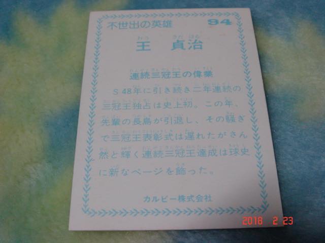 カルビー 77年プロ野球カード 『不世出の英雄』 NO.94 (王/巨人) 青版・美品