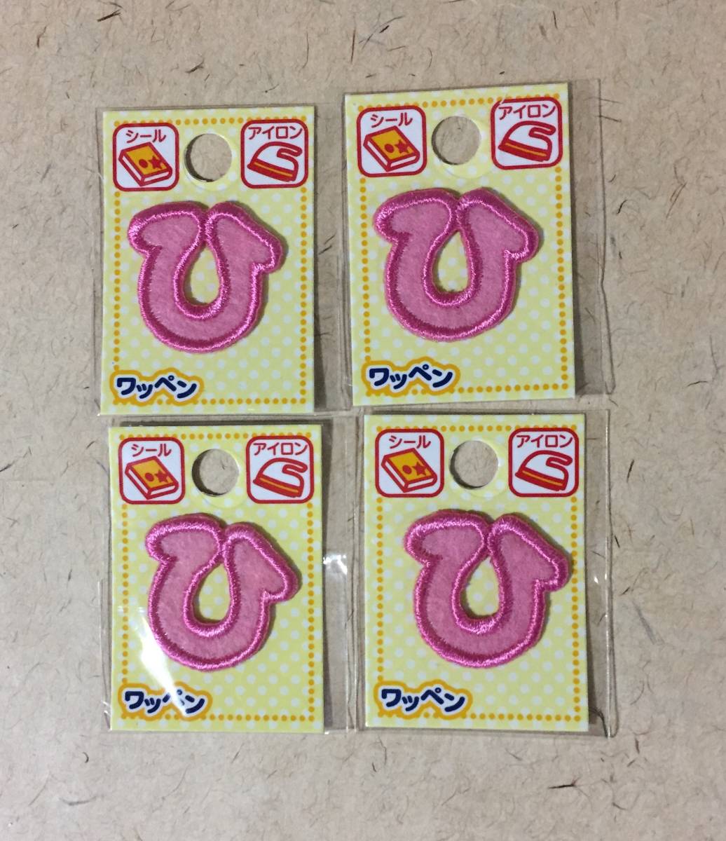 【ワッペン★シール/アイロン】ひ 4枚★ピンク×ピンク