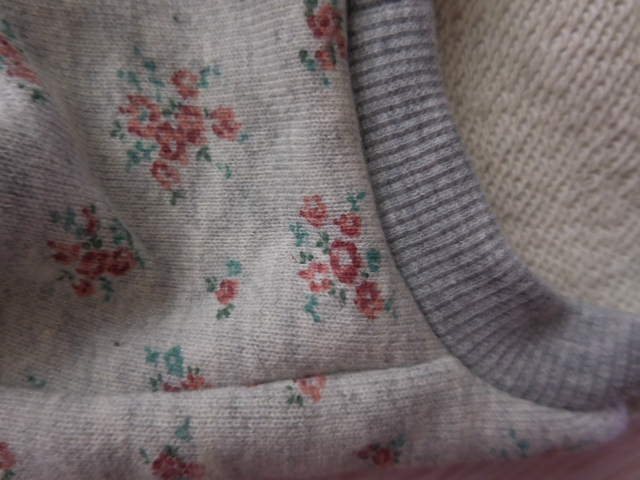 家庭用ミシンで作っているため、ニットの毛羽立ちがあります。