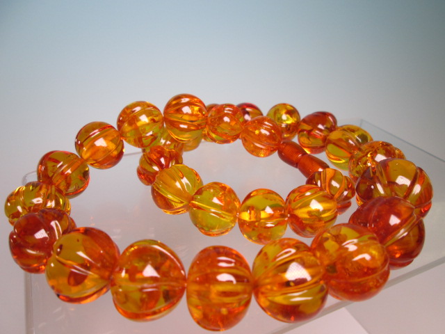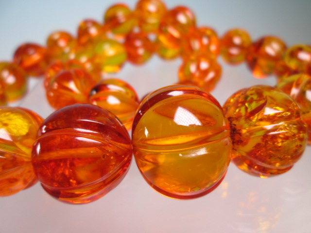状態はとても良く綺麗です。琥珀玉に輪花の彫刻が有ります。