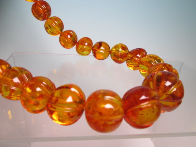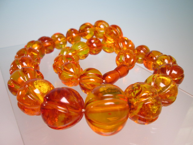 ☆輝きの天然琥珀玉 大粒 1,6cm~2,2cmの豪華なネックレス 86g
