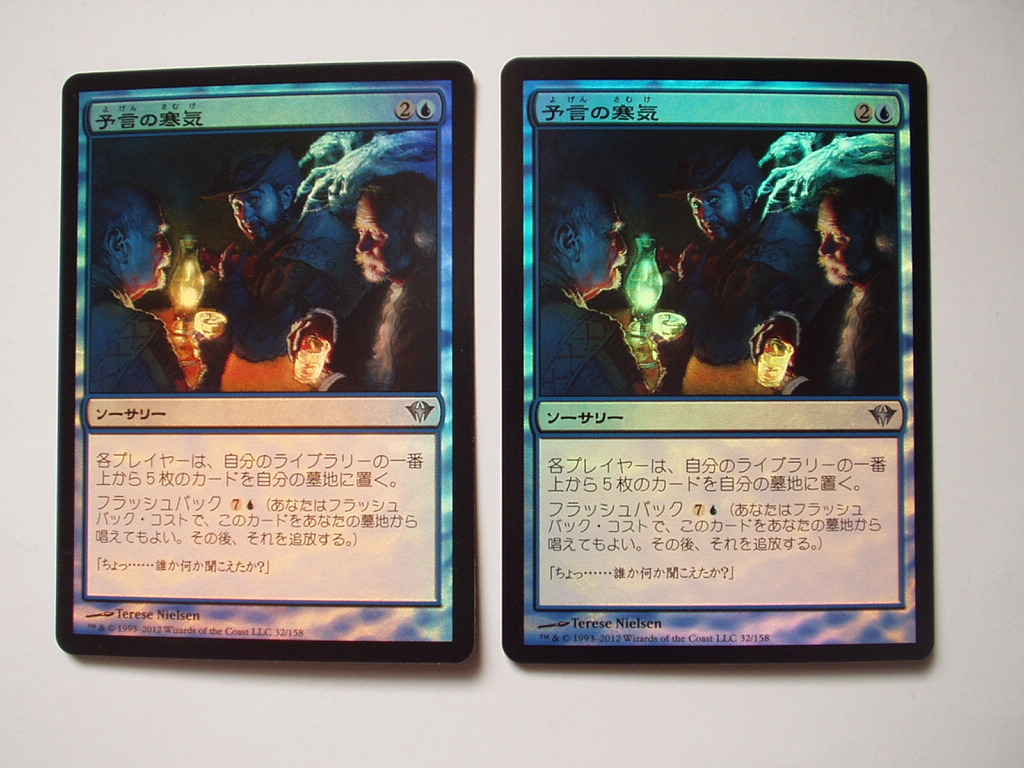 B知人の委託品です。 画像が全てです。 MTG 予言の寒気/Chill of Foreboding foil 日本語2枚です。 何語だか分らない時があります。 エキスパンション、外国語(言葉)は画像で確認をお願いします。 カードはプレイしています。 程度はカードに目立つ擦り傷、キズ、ペン跡のようなキズ、汚れ、角や端に傷、黒枠にキズ、などのキズが結構あります。 カードからタバコや香水の匂いがします。 カードが丸まっていたり反ってたりしています。 気が付かない部分がありますので程度を気にする方は入札をご遠慮下さい。 程度は下、ボロです。 コレクションには向きません。 何か起きた場合には自分では対応が出来ませんのでご理解頂ける方のみ入札をお願いします。 普通郵便で発送します。 郵便事故や郵便破損、その他が起きた場合には保障できません。 ノ-クレーム、ノーリターンでお願いします。 ●クロネコメール便は3/31で発送が出来なくなりました。ご了承下さい。