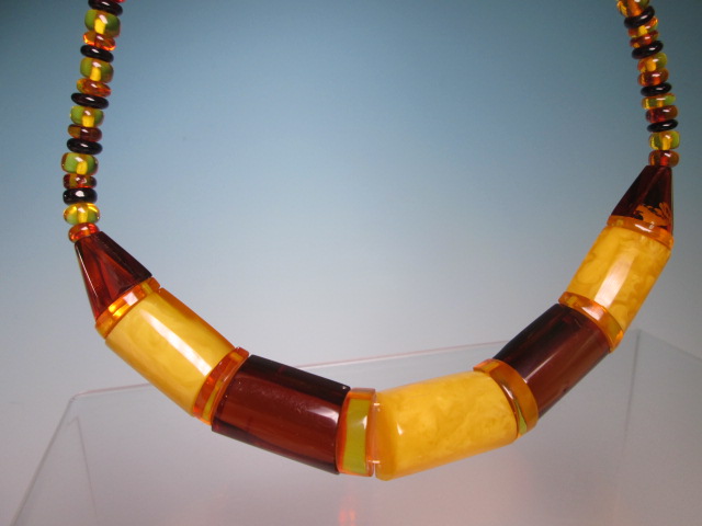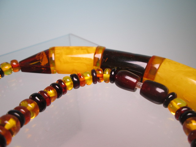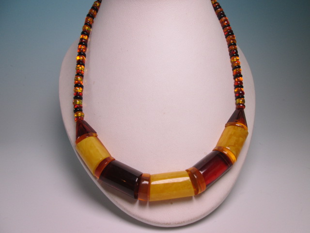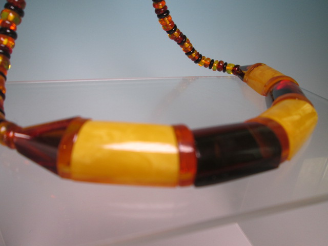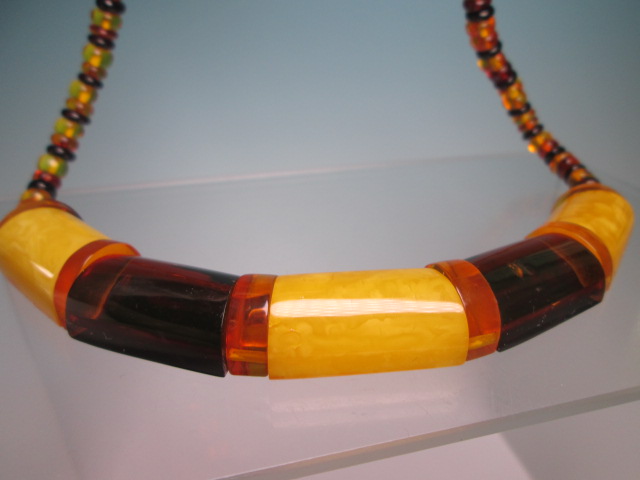 サイズ 中央の黄色琥珀 2,8cmx1,7cmx厚み1,15cm 長さ 49cm