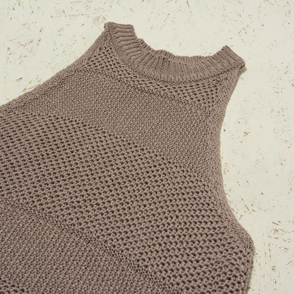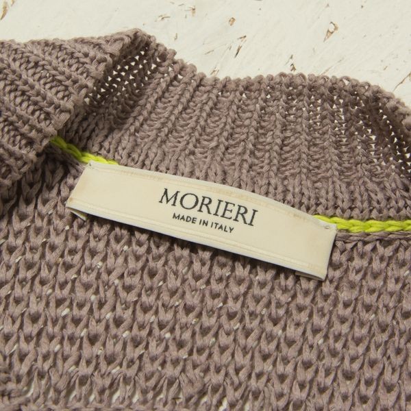 TOMORROWLAND DES PRES購入のモリエリのニットです。編みを変化させたさりげないボーダーになっており、詰まりぎみの首元と広めに取られたアームホールのバランスが絶妙なアイテムです。