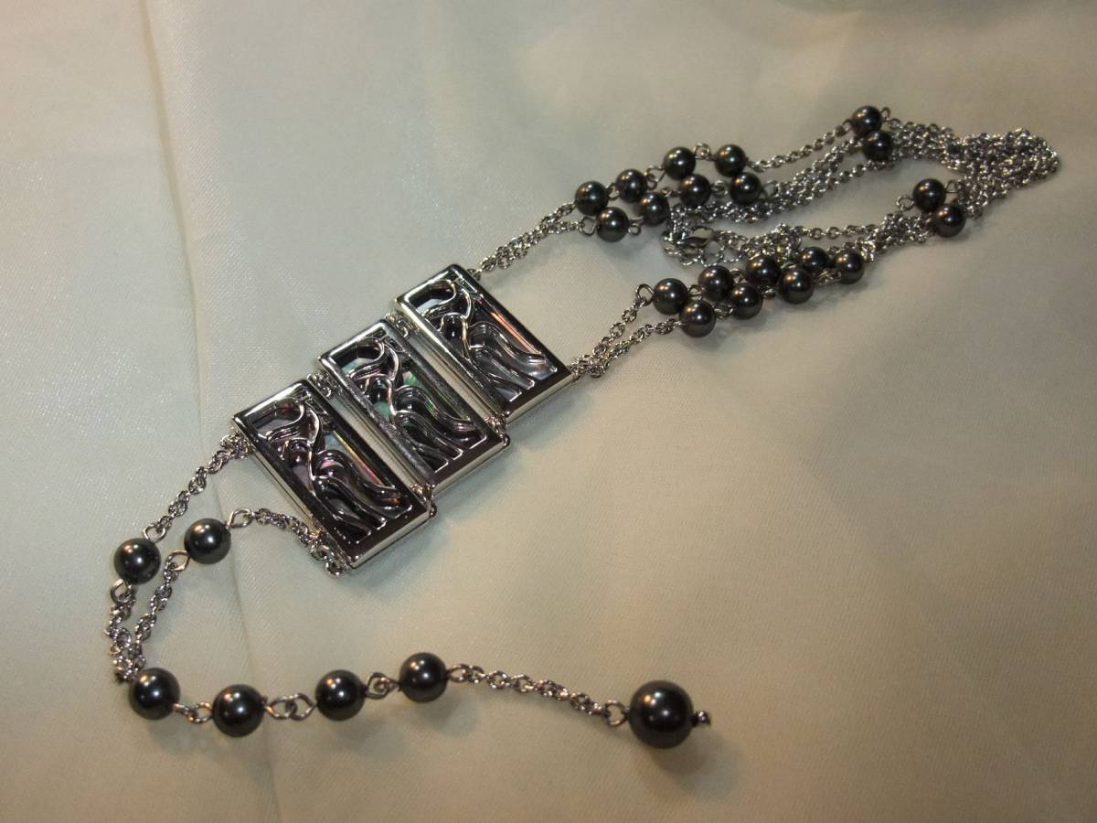 ゴージャスリッチなロングネックレス東欧本場ビンテージお素材ラインストーンなど使用のビンテージコスチュームジュエリー♪このシリーズは殆どが古いオーストリア製のラインストーンかチェコビーズ、パールビーズ等を使用しています♪(お品によって使用されているものは違うので画像にてご確認ください♪)ユーロ系デザイン新古品や美品のシリーズ☆古い手持ちコレクションより処分☆