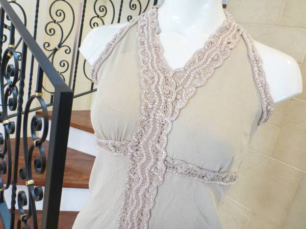 高級プリモ NOVESPAZIO ノーベスパジオ ベージュ ビジュー ノースリーブ トップス 38 M相当