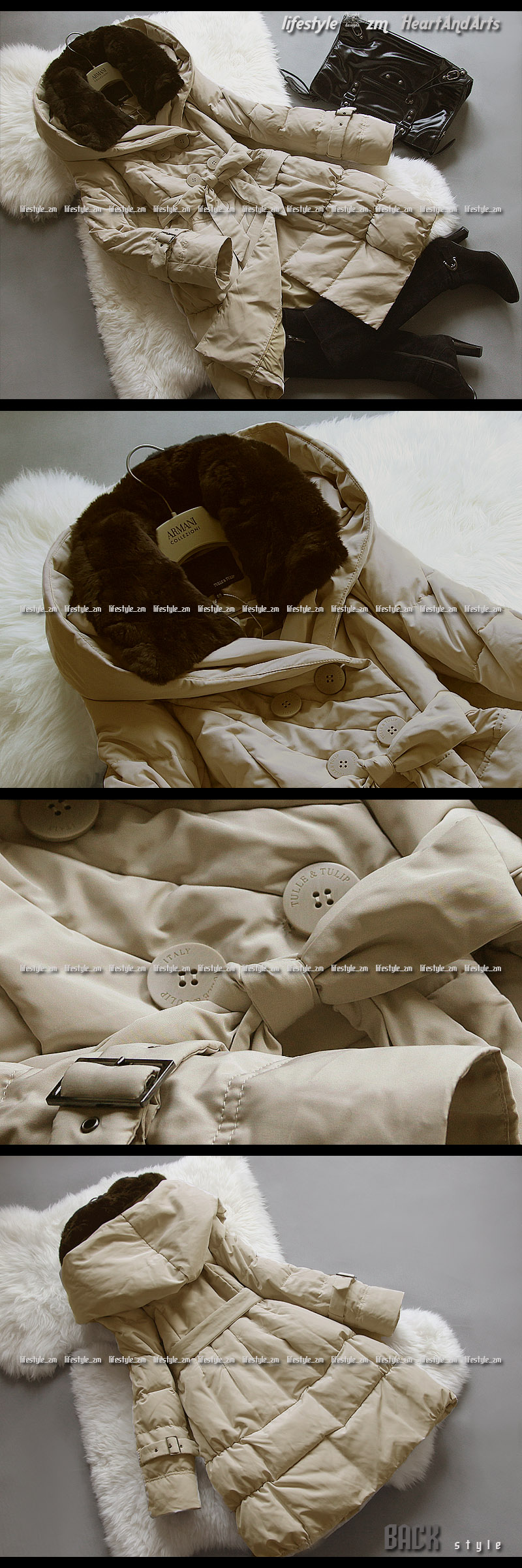 新品★11号★人気イタリアデザイン★ラビットファー付フード DOWN ★ダウンコート★ L