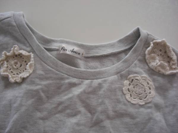 美品パラビオン かぎ編みレースフラワースエット グレイ
