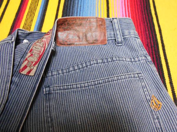 VOLCOM オリジナル ハイオンスダンガリー素材使用、タフな作り、スケートボードなどハードな動きに対応するタイト過ぎない絶妙なシルエット、バックポケット VOLCOM ディケール刺繍 等等...ディテールとても良い感じ