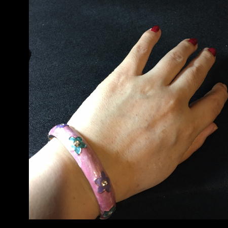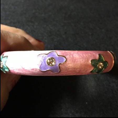 バングル 景泰藍 七宝焼き プチダイヤ 花模様 ピンク色 ⑦