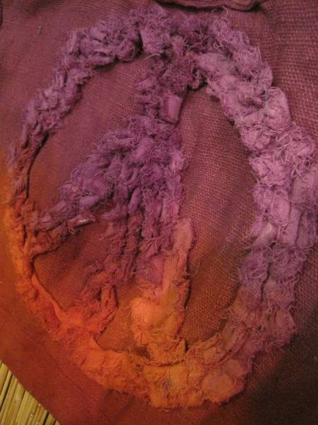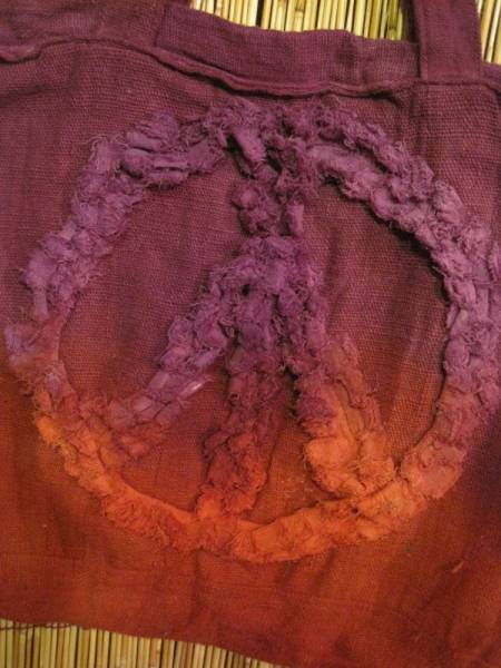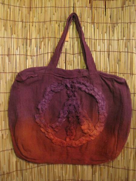 ①手染めグラデーション★粗織りコットン★ピースマークバッグ