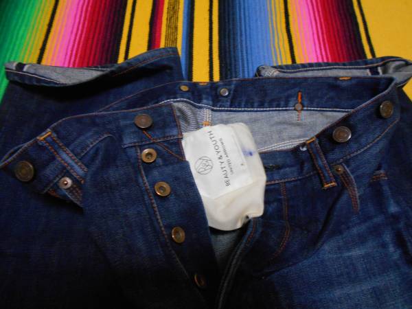 「BEAUTY & YOUTH」 ペインター特有の絶妙なシルエットラインや良質なハイオンス インディゴデニム素材感、セルビッチ、ワークパンツの頑丈なリベット補強 + トリプルステッチ縫製、バックシンチベルト、ドーナツボタンフライ 等等...ディテールがとても良い感じ