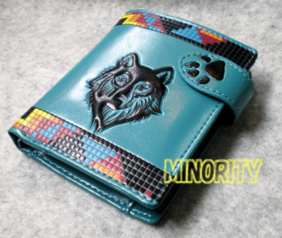 ☆ ウルフとドリームキャッチャーをデザインした 男女兼用 二つ折り財布"Teal BLUE"です。