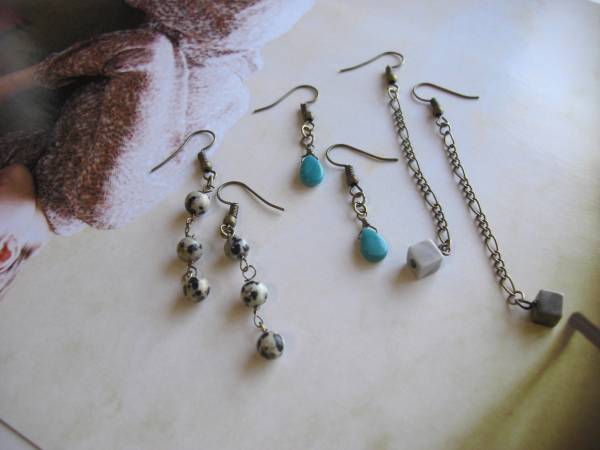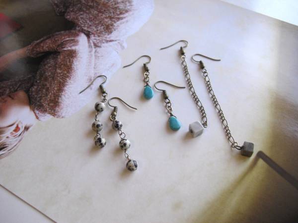 シベールの宝石箱・・シリーズです♪私的・スタイル・・キュートなジャスパーやダルメシアン、ターコイズのピアス3点セットです♪個性的な素材を集め てニューヨークテイストなデザインです♪色々な組み合わせや単品でも楽しんでいただけます♪ダルメシアンは6ミリの丸玉、ジャスパーは7ミリの キューブです♪ターコイズは9×6ミリ位のペアシェイプです♪ダルメシアンのピアスは全長6センチ、ジャスパーのピアスは全長8・5センチ、ターコイズのピアスは全長4センチ位です♪それぞれイヤリングにも変更出来ます♪お揃いのネックレスやブレスレットも出品しています♪ハンドメイドをご理解頂いてノークレーム、ノーリターンでお願いします