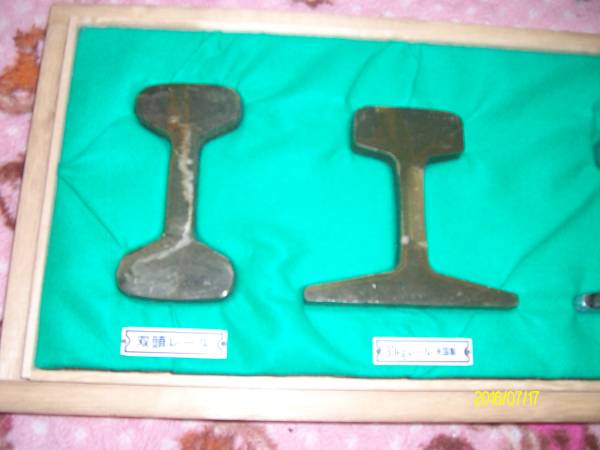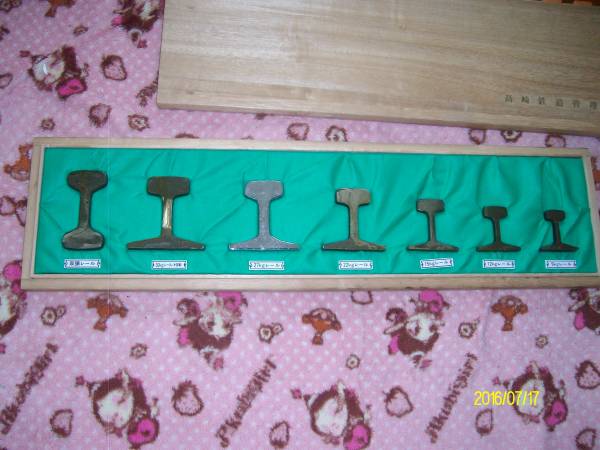 桐生駅のイべントで購入したものです.双頭レールも入っていますが.テレビ鑑定団で15万の鑑定結果が出ていますので.ご検討願います.このセットは加工数が少ないようで.イべント当日1点のみの販売でした.入手から約30年経過していますが程度は良好です.なお双頭レールだけの桐箱入りは5セット販売されていました.経年変化の為に錆の発生が一部分に見られます。