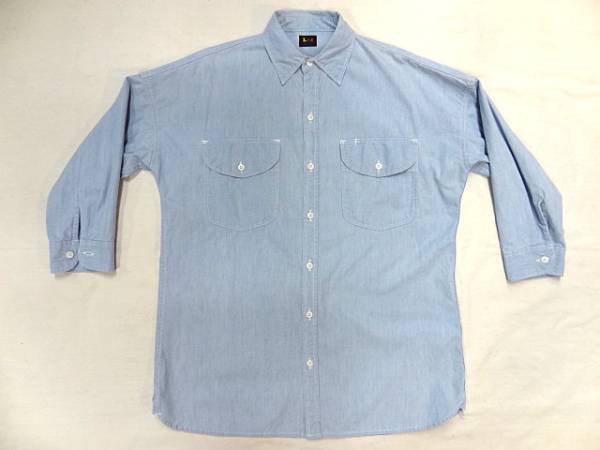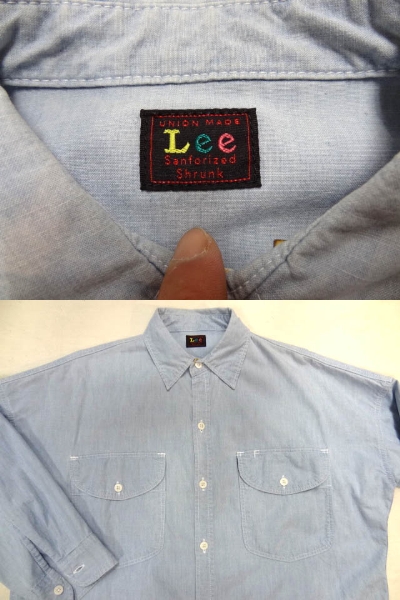 リー LEE 希少 デザイン シャンブレー オーバー ビッグ サイズ シャツ ジャケット XL レア ビンテージ 古着 90S 珍品 ブルー 水色 カラー