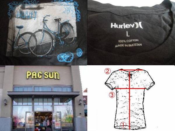 ★USA購入サーフ系【Hurley】 レトロな自転車プリントT US L 黒