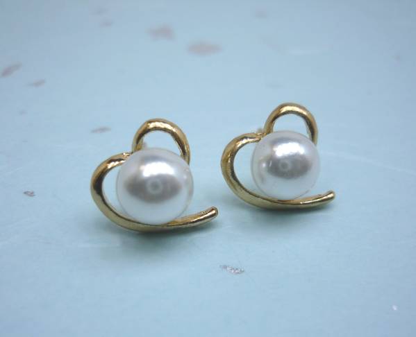 ハート型パールピアス(ゴールド) 1ペア