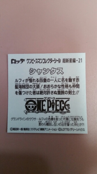 ワンピースマンコレクターシール 超新星編 21シャンクスです。