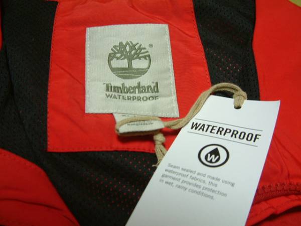 ティンバーランドのレッドが鮮烈な防水ジャケットです。
