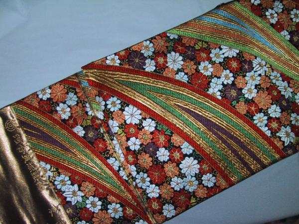 河合美術織物の六通柄袋帯。裏地はくろ地。絞りの振袖にはこのタイプ柄、格、の帯が、一番相性がいいのです。絹100%金属糸等使用 新品 み仕立て品。
