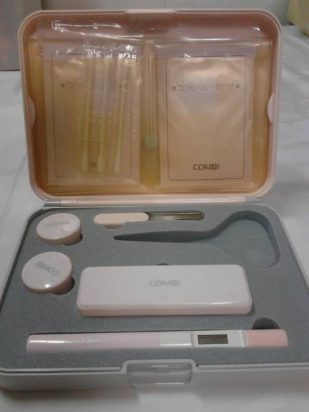 コンビ ベビーコンパクトシリーズ ケアーセット☆中古品☆ 電子体温計 ノーズピンセット 綿棒ケース クリームケース ビニールケース等が入っています。(爪切りハサミ欠品) 小物入れとしても使用できます。長期自宅保管品のため擦れなどが有ります。 発送方法はレターパックプラスを予定しています。