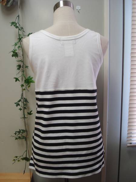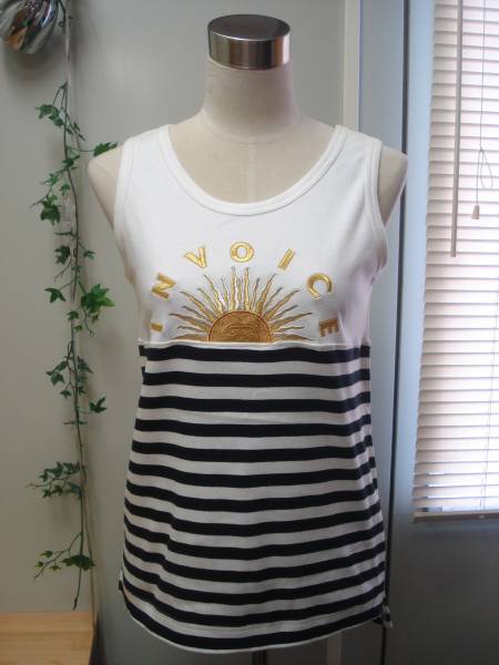 未使用【INVOICE】☆ボーダー柄 太陽モチーフ刺繍 タンクトップ/w272-355