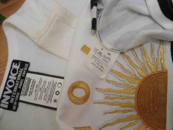 未使用【INVOICE】☆ボーダー柄 太陽モチーフ刺繍 タンクトップ