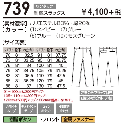 新品☆SOWA 静電スラックス 70~130 作業ズボン ワーキング 739