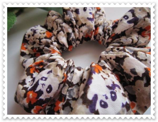 ★シュシュ★お花畑のかくれんぼパンダ★ベージュ系★
