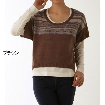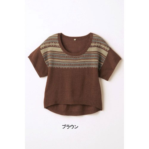 最終お値下げ!95%オフ!新品タグ付き ベルメゾン 千趣会 ノルディック柄 半袖ニット ジャカードニット プルオーバー 茶 M 9号 定価2,990円