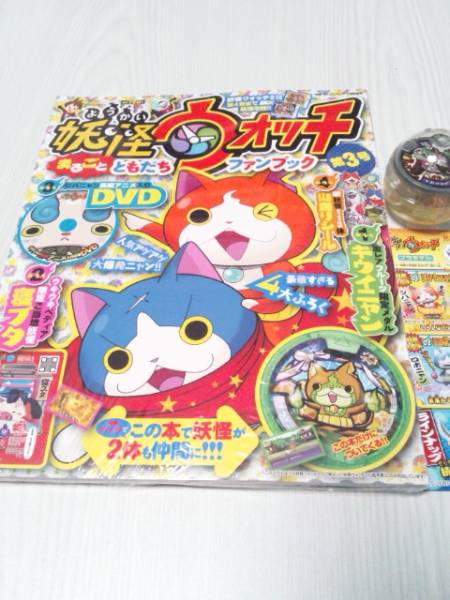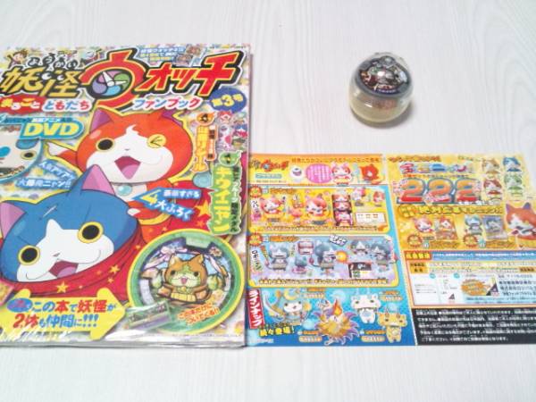 ガチャ妖怪メダル付きのファンブック第3号!メダル宝石ニャン応募ハガキ(無効)付き☆他のメダル付きも出品中。(第三弾-りゅーくん 弾四弾-まさむね・かゆかゆ)