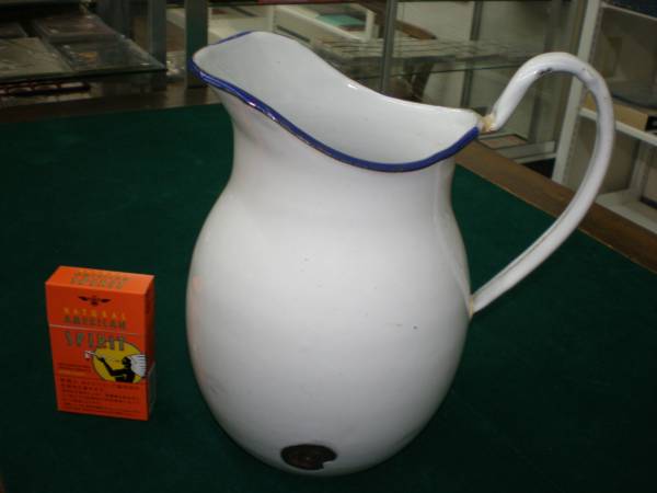 ジャグ ホーロー 水差し フラワーベース 丸型 輸入 経年 ガーデニング