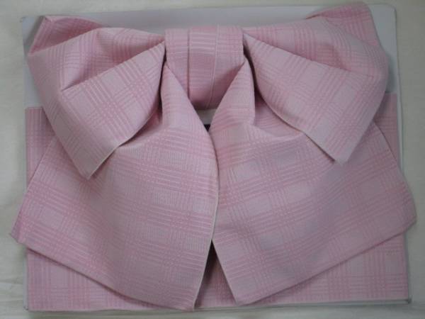 新品即決!女性yukata用、地紋柄結び帯3-91(同柄同色薄ピンク)2点セット