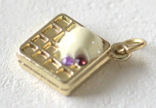 ラインストーンがついたバニラワッフルのメタルチャームです。