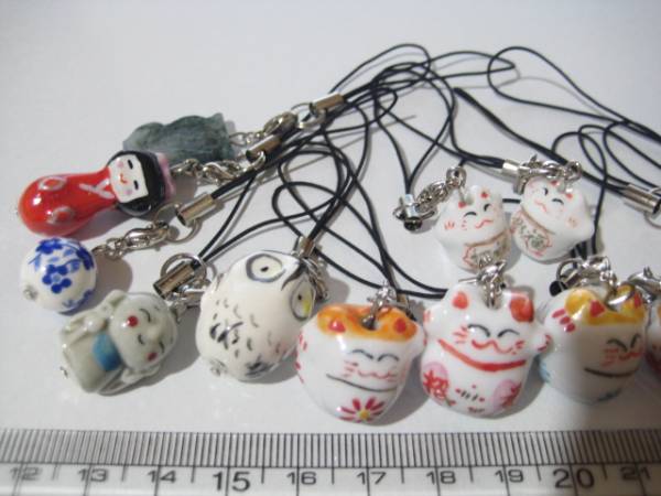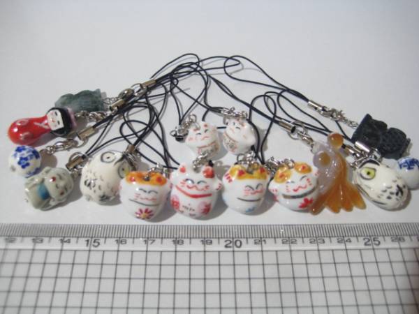陶器☆天然石金魚☆和ストラップ☆15本セット1