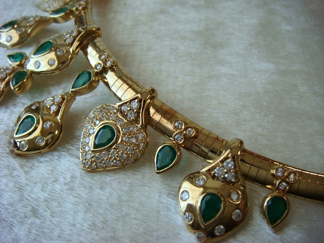 | ご覧頂きましてありがとうございます! 豪華!エメラルド&ダイヤモンドネックレス。エメラルドは5,75カラット。ダイヤモンドは3,95カラットです。 オーダー品です。豪華なパーティーではかなり目立ちます。5月生まれの花嫁にいかがでしょうか? 長さは約40cm。重さは約80gもあります。長期保管により金特有のくすみがあります。 追加画像がありますのでパソコンでご確認ください。 宝石との出会いは一期一会です。『いいな』と思ったら是非、身につけてあげて下さい。きっと宝石も喜ぶことでしょう! 宝石は決して貴女を裏切りません。身につけた貴女を守ってくれることでしょう。 いつも頑張っている自分へのご褒美にいかがでしょうか? 良いものをひとつお持ち下さい。一生物のジュエリーとなります。 高額商品ですので、実際に現品をご覧になられることをお勧めいたします。 画像での判断は難しいと思いますが、落札後の返品、クレーム等の無きよう、目利きの方、お解りになる方、面白そうだなと思った方、ご自分の自己責任においてご入札下さい。 モニター、パソコン、カメラによって色や感じ方が変わりますのでご注意下さい。商品についてはコレクター、質屋さん、お客様の委託品が中心ですので、ご質問の答えが遅くなる事がありますがご了承下さい。 商品説明につきましてはすべてをお知らせできませんので、質問にてお願いいたします。 基本的にはUSED品ですので、その点を十分にご理解の上ご入札下さい。途中で出品を取り下げる場合もありますがご了承下さい。 尚、トラブル回避の為、申し訳ございませんが、新規の方及び評価によってはこちらで入札を削除させていただく場合もございますが、ご理解下さい。 メールの確認は夜になりますのでご連絡が遅くなることもありますがご了承願います。 品物にも人と同じように『こころ』があると思います。喜んでいただけることが私にとっても品物にとっても一番良いことだと思います。 『落札したけど気に入らなかった』ということが無いように十分にお考えになってからご入札下さい。 発送は宅配便を予定しております。また発送には2,3日かかる場合もございますが、ご了承願います。 落札金額より僅かですが『子ども虐待防止 オレンジリボン運動』へ寄付をさせていただきますがご了承お願いいたします。 | |