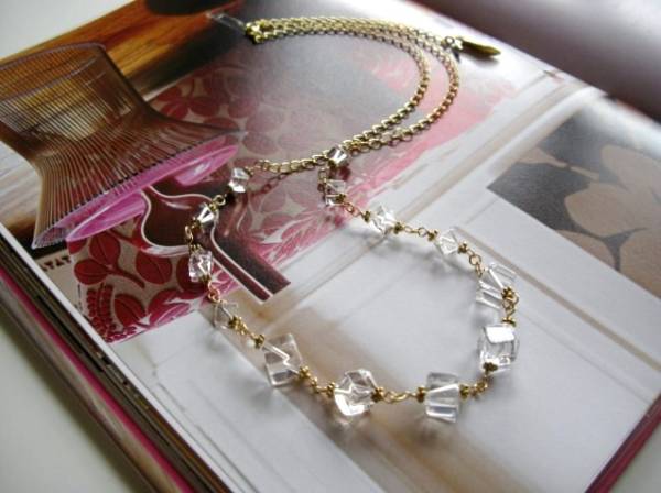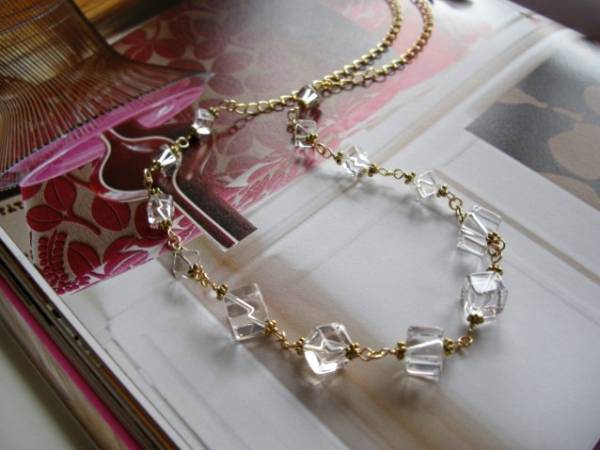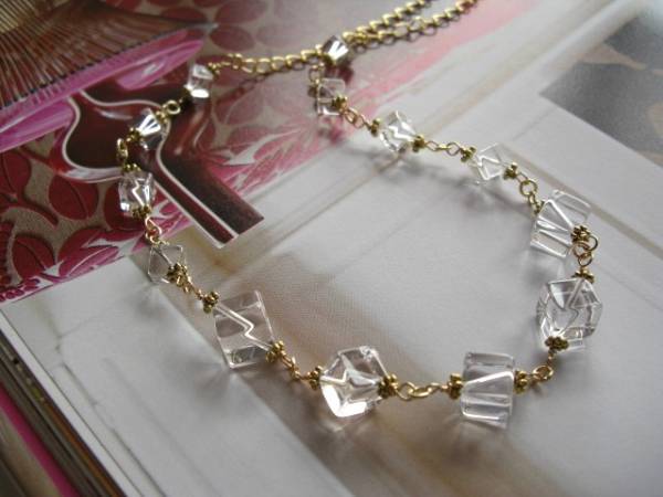ずっとお気に入り・・シリーズです♪眠り姫の首飾り・・神秘的な水晶のネックレスです♪♪座金でおめかししたキューブの水晶を紡いで可憐にロマンチックしています♪水晶は10ミリ、8ミリ、6ミリのキューブです♪長さは全長77センチ位で調節自由です♪短くチョーカー風にされても素敵です♪お揃いのブレスレットやイヤリングも出品しています♪シンプルで長く着けられるデザインを考えて作りました♪ハンドメイドをご理解頂いてノークレーム、ノーリターンでお願いします♪