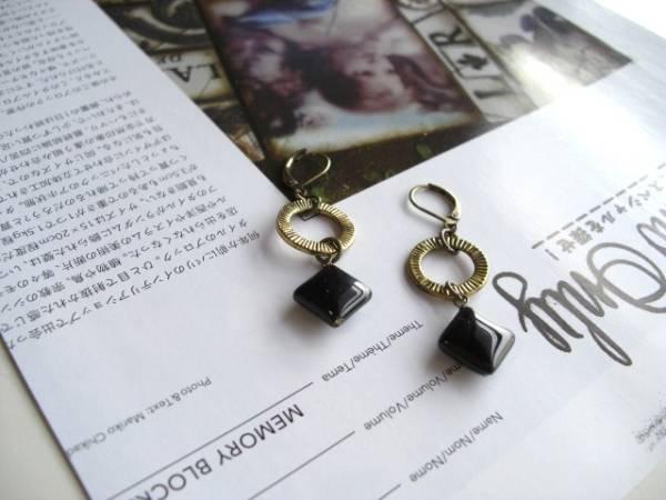 モダン・ガール・・シリーズです♪オニキスレシピ・・シックなオニキスのピアスです♪スクエアのオニキスにデザインリングを合わせてフレンチ・モダンな表情です♪ピアスの長さは5・5センチ位です♪イヤリングにも変更出来ます♪お揃いのネックレスも出品しています♪シンプルで飽きのこないいつまでも着けられるデザインを考えて作りました!ハンドメイドをご理解頂いてノークレーム、ノーリターンでお願いします