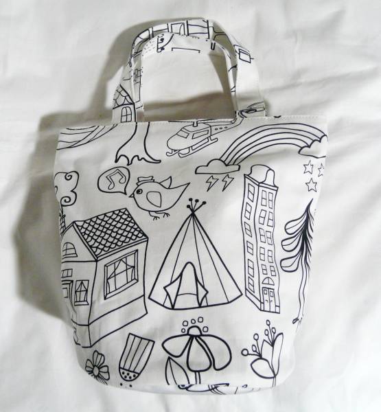 スウェーデン生地/内側防水トート/可愛いモノ柄バケツb