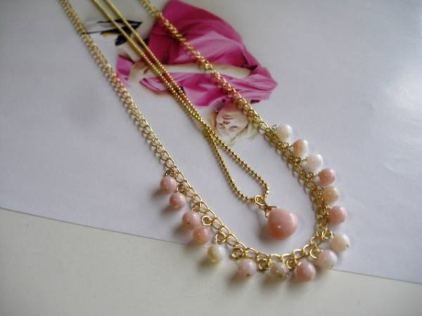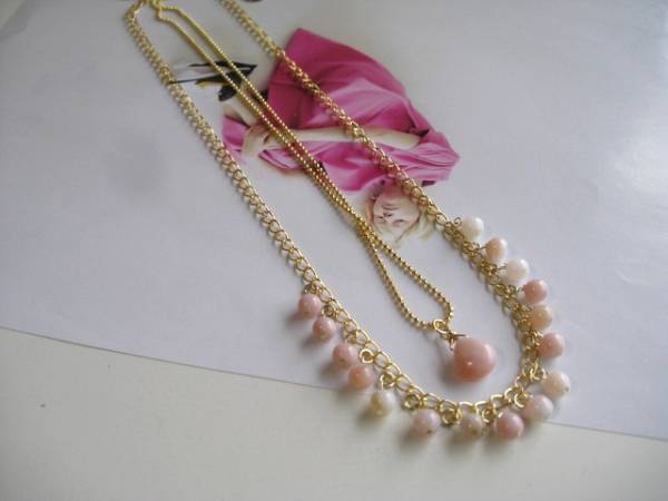 ロゼッタの宝石箱・・シリーズです♪薔薇色の女の子・・繊細なピンク・オパールのネックレス2点セットです♪重ねても単品でも楽しんでいただけます♪甘すぎないモーヴ・ピンクのオパールは丸玉やマロン・シェイプです♪デザインチェーンを合わせてロマンチックな表情です♪12ミリ位のマロン・シェイプのオパールには華奢なカット・ボールチェーンを合わせました♪揺れる度にきらきら輝いて綺麗です♪長さは67センチ+アジャスター13センチで最長80センチ位です♪6ミリの丸玉のオパールはランダムに紡いでいます♪長さは全長65センチ位で調節自由です♪それぞれ単品やブレスレットやイヤリングも出品しています♪シンプルで長く着けていただけるデザインを考えて作りました!ハンドメイドをご理解頂いてノークレーム、ノーリターンでお願いします